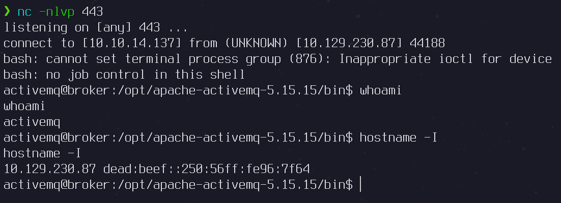 Si analizamos la versión de los servicios que están presentes en la máquina, podemos observar que en el puerto 61616 utiliza la versión 5.15.15 de ActiveMQ, la cual es vulnerable a RCE.