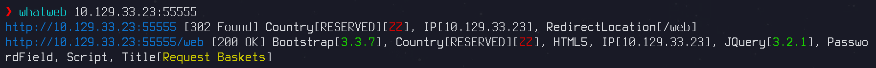 En la captura de nmap, podemos ver que en el puerto 55555 hay un servicio web. Utilizamos la herramienta whatweb para conocer las tecnologías que utiliza.