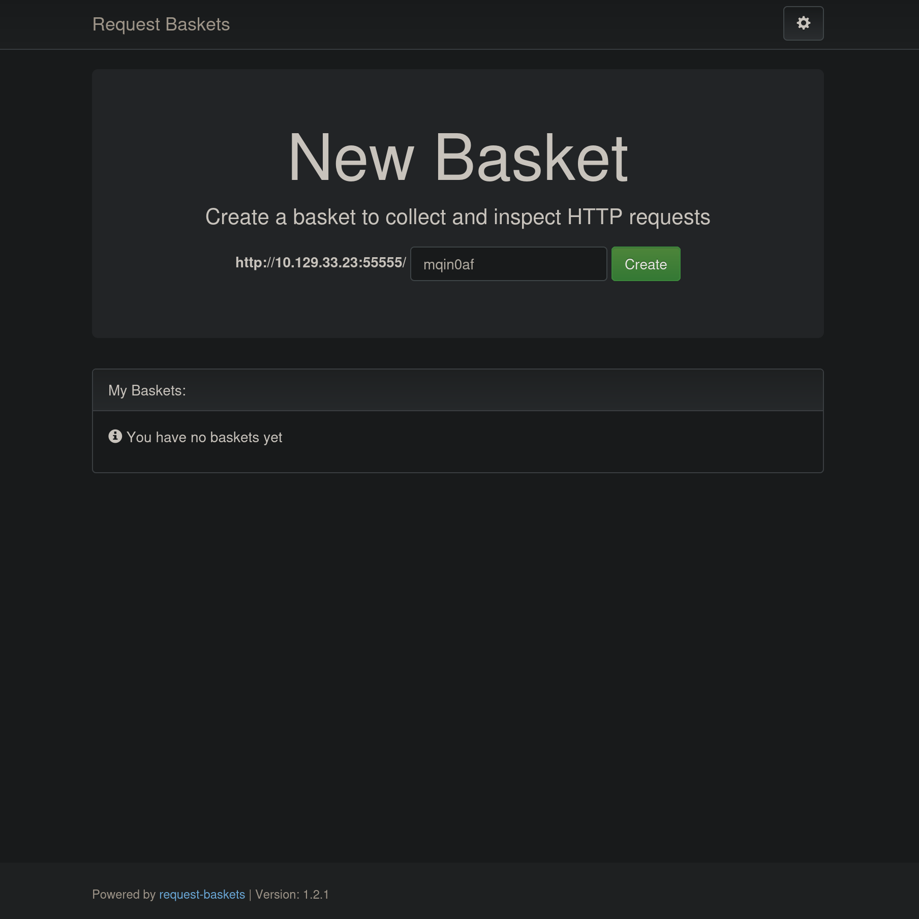 Accedemos a la web y podemos ver que utiliza request-baskets - 1.2.1. Esta versión es vulnerable a Server-Side Request Forgery.